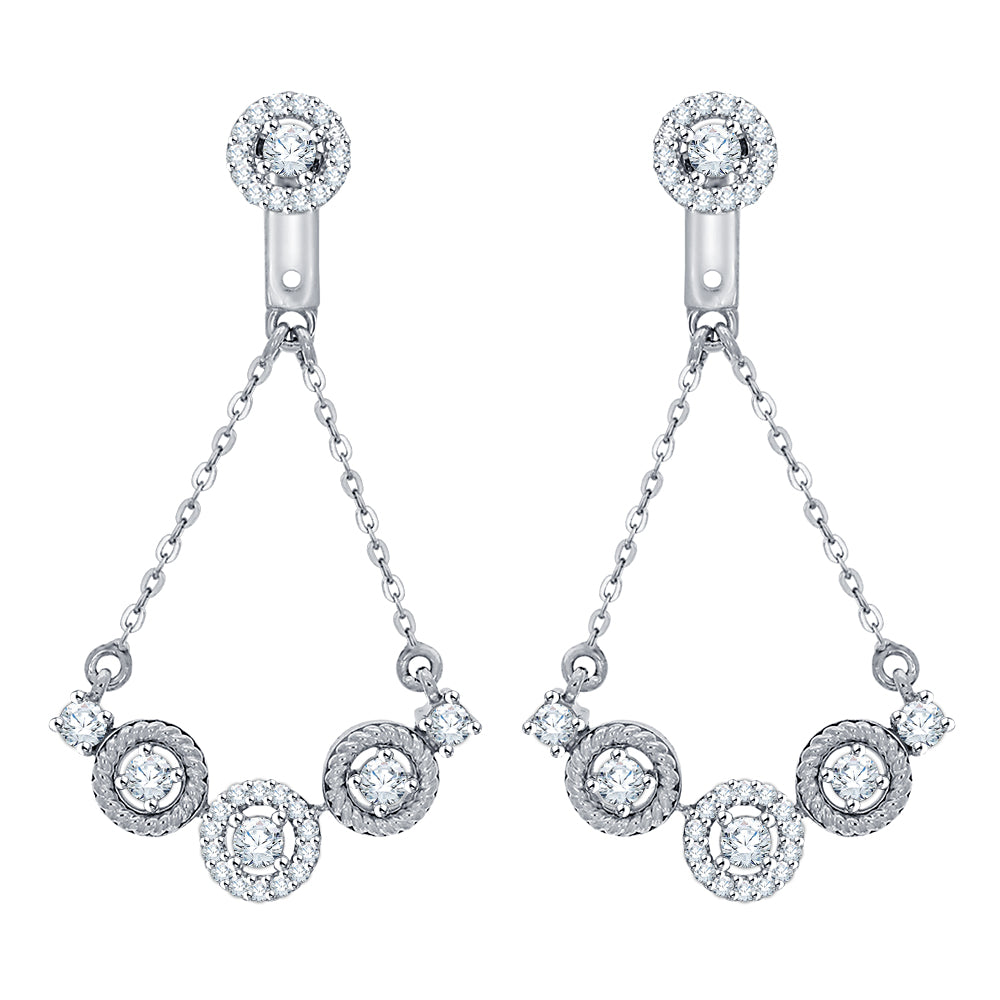 A unique design ensures that these beautiful diamond dangle earrings are an addition to your collection. Crafted from gold or silver, these earrings features sparkling round diamonds which makes this ornament perfect for any occasion and enhances a touch of elegance to your beautiful look.