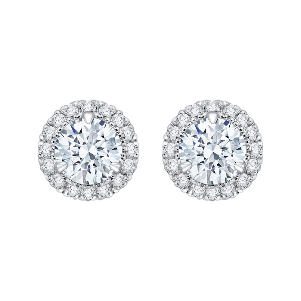 KATARINA 7/8 cttw Lab Grown Diamond Halo Earrings in 14k Gold