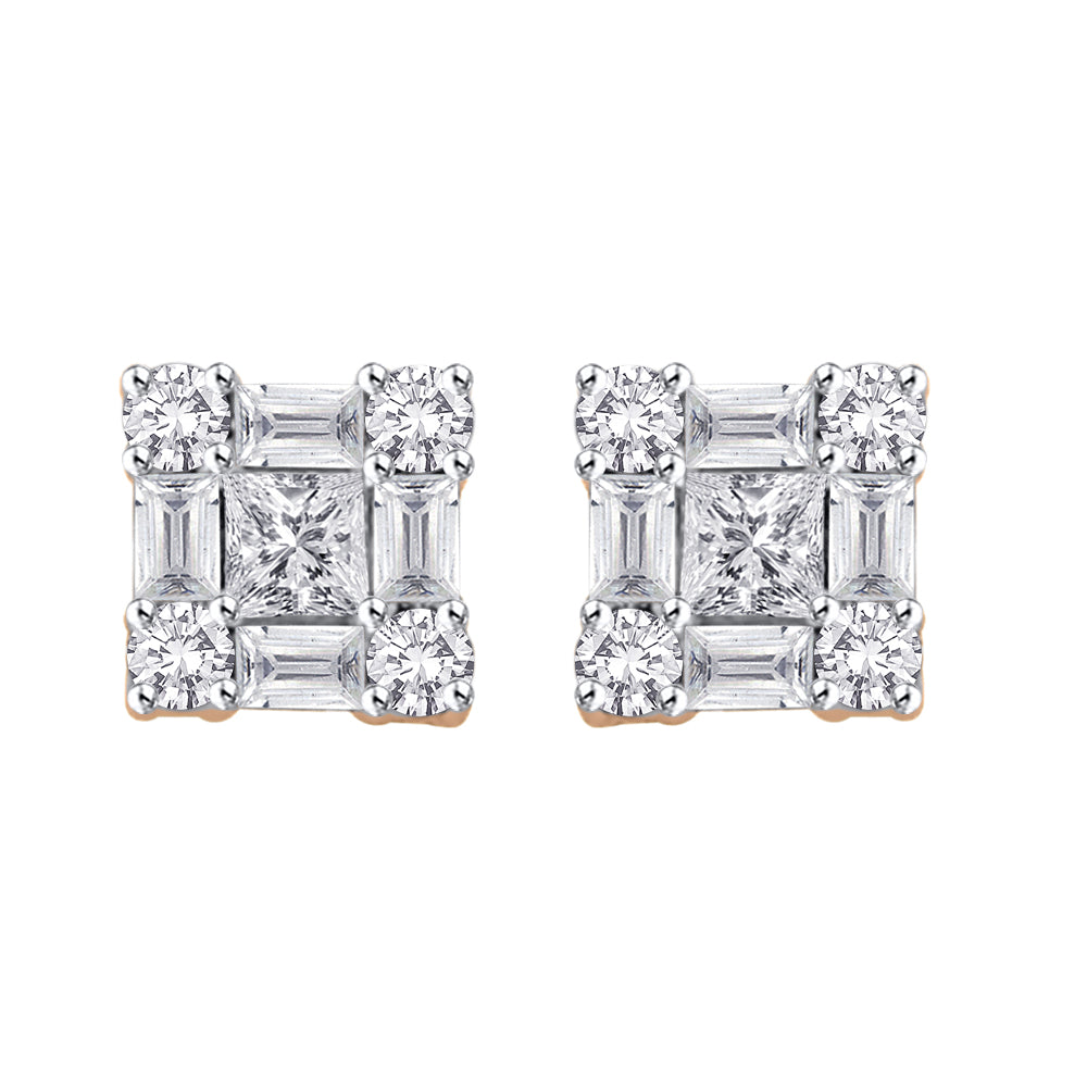 KATARINA Round and Baguette Cut Diamond Earrings (1/2 cttw)