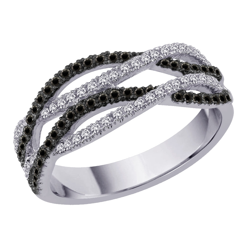Express your eternal love with this gorgeous ring. A sparkling row of dazzling black,brown treated and white diamonds beautifully set in polished band of lustrous white gold. A look to treasure forever. This item might contain diamond or gemstones that have been treated to enhance their appearance or durability.