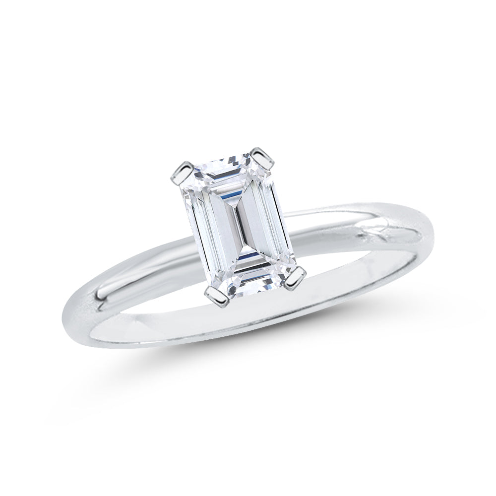 A single diamond solitaire ring will always be adored for its classic and elegant beauty. This 1.01 ct. sparkling emerald cut Diamond is masterfully prong set in a well crafted Gold ring. Available in yellow and white gold, please contact us via phone or email.